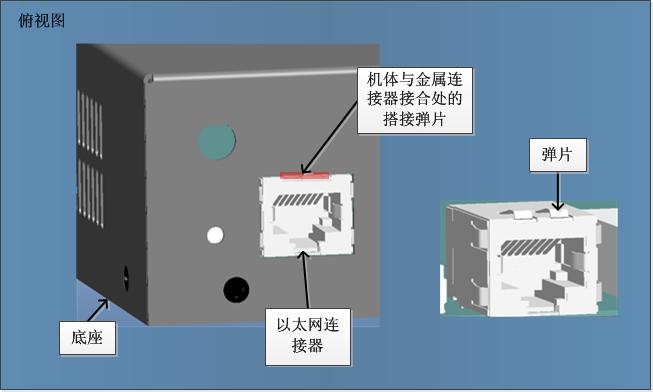 (2) 機體與百兆以太網(wǎng)金屬連接器之間的接合處要增加彈片,使兩者接合時保持良好的導(dǎo)電性能。具體搭接方式如上圖所示: